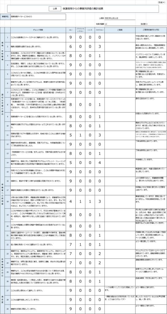 カテゴリー 未分類 保護者向け放課後等 デイサービス評価表 投稿者 作成者: daisuke 投稿日 2025年12月11日 保護者向け放課後等 デイサービス評価表 へのコメントはまだありません 5年度版 6年度版 7年度版