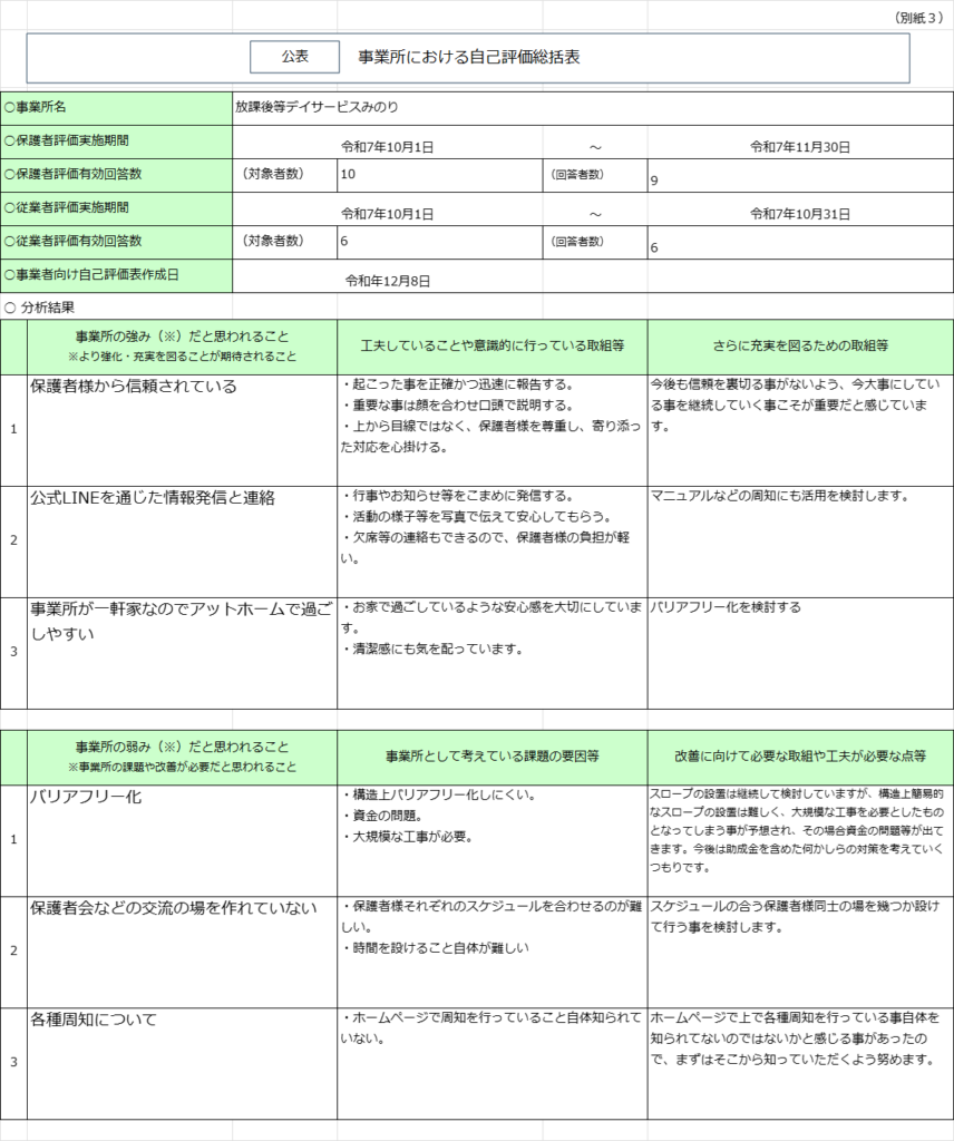 カテゴリー 未分類 事業所向け放課後等デイサービス 自己評価表 投稿者 作成者: daisuke 投稿日 2025年12月11日 事業所向け放課後等デイサービス 自己評価表 へのコメントはまだありません 5年度版 6年度版 7年度版